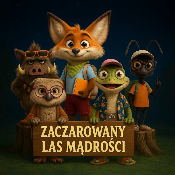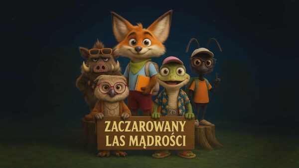 Zaczarowany Las Mądrości to wyjątkowa kraina, do której dziecko wróci w każdej wysłuchanej lub przeczytanej bajce na dobranoc. Został stworzony z myślą o młodych słuchaczach, łączy magię z porządkiem i przewidywalnością. Dzięki czemu dziecko może poczuć się w nim pewnie i bezpiecznie, jak w dobrze znanym miejscu. To świat pełen charakterystycznych punktów, takich jak Dąb Mądrości, Drzewo Wspomnień, Polanka Zgody czy Zakamuflowany Zakątek. Każde z nich ma swój klimat i znaczenie, tworząc nie tylko bajkową scenerię, ale też wspólny kontekst dla różnych historii. W Lesie Mądrości obowiązuje też jego własna waluta – złote kamyczki. To prosty, zrozumiały dla dziecka sposób nagradzania dobra, współpracy i samodzielnego myślenia. Dzięki takim stałym elementom świat bajek staje się znajomy i przewidywalny. Nie zmienia się z opowieści na opowieść, dlatego dziecko z czasem traktuje go jak swój własny, bezpieczny i magiczny świat.